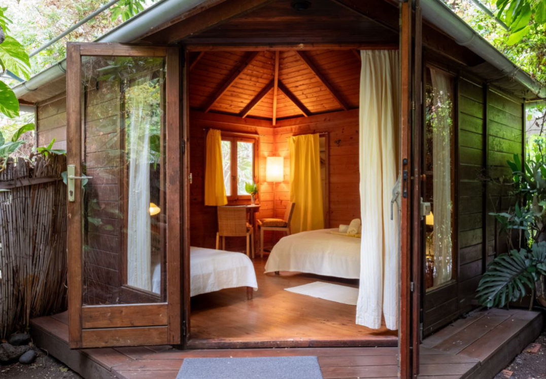 Retreat guests will stay in one of Finca Argayall's uniquely designed studios, rooms or garden huts, dotted around the beautiful permaculture garden. Each is a one-off, with design and layout different in each. A network of pathways connects the rooms to each other and down to the ocean path.